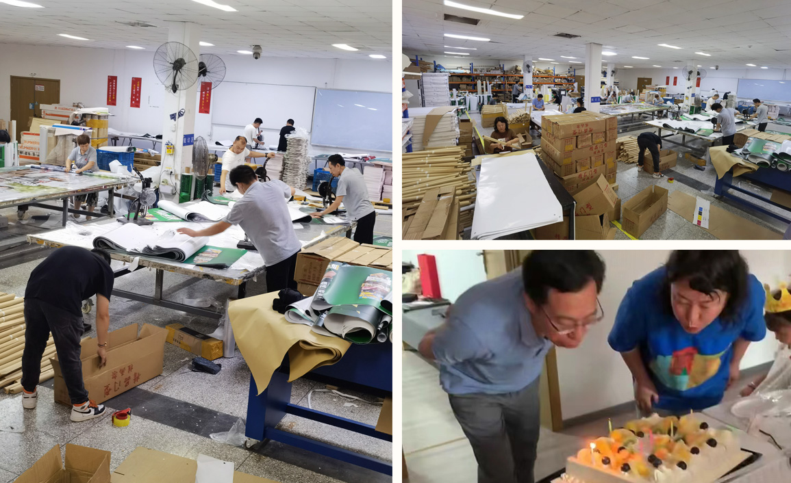 公司承攬的蒙牛門型展架40000套要求7月2日全面交付,后期手工壓力巨大,為了搶工期和進度,確保產品按時交貨,公司在內部溝通群發布動員令。要求三樓職能部室人員6月27、28日協助生產,領導帶頭是最好的示范,無論是工廠的蔣廠長,市場部的徐總,還是公司的總經理唐總都在手工現場率先垂范,全身心投入工作,生產現場忙碌有序,打眼、卷畫、裝箱、打包,職能部室的員工與生產一線的員工相互配合,有條不紊的工作。截止28日共完成8200套,極大的緩解了交期壓力。